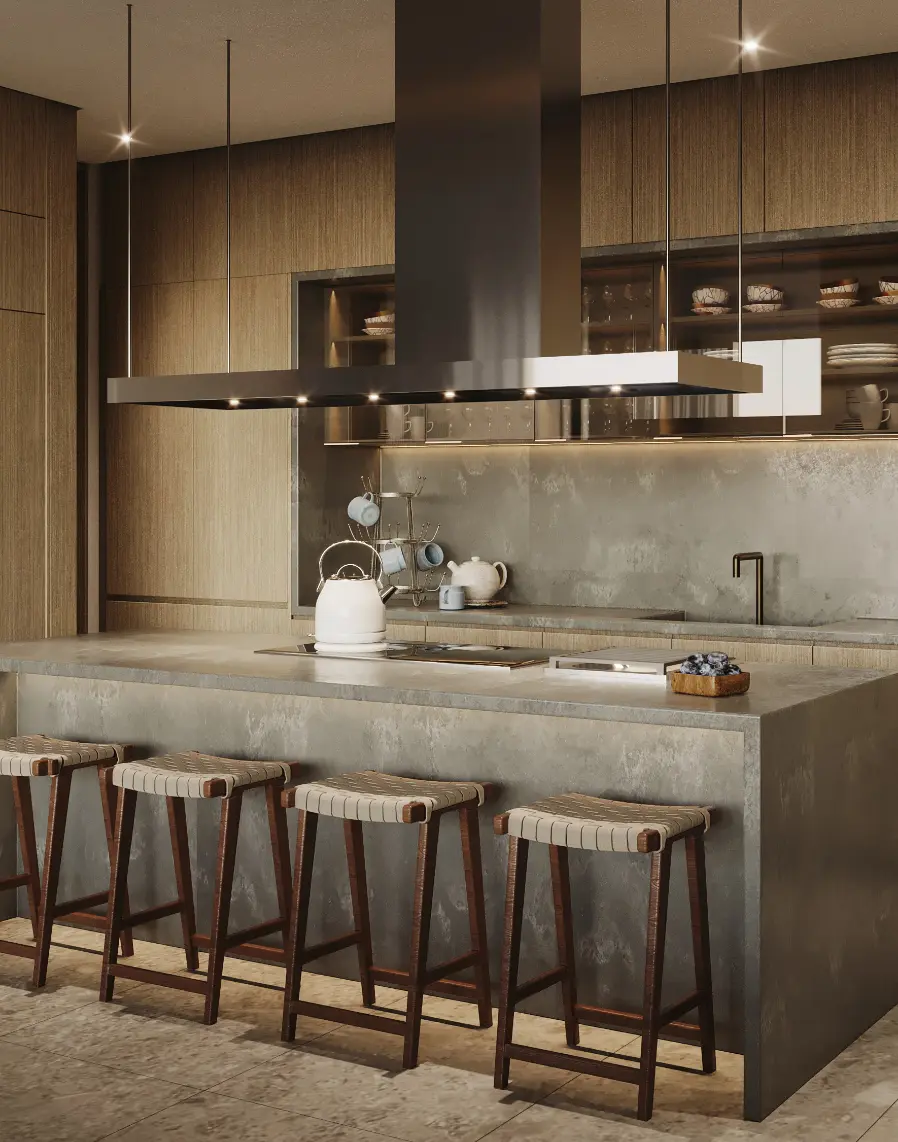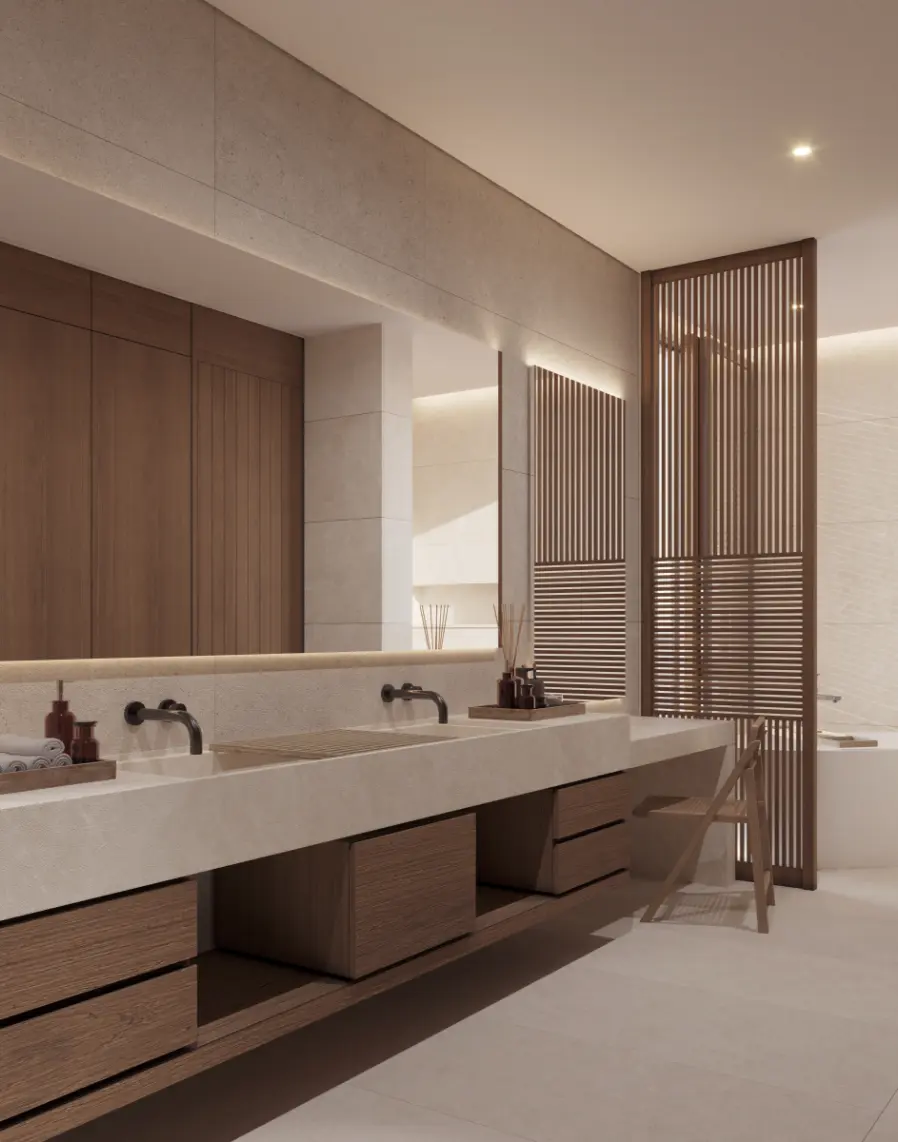 Crafted with American oak woodwork, marble flooring, and Gessi fixtures.